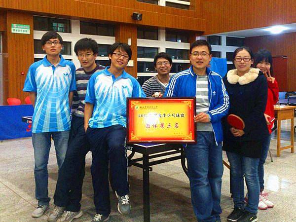 另外,个人赛也十分精彩,我院男单主力白于在强手如林的赛场上,在小组淘汰赛,半决赛,决赛循环赛中突出重围,最终获得个男乒个人赛的冠军;女乒中,我院奚玉莲同学和张莹同学也打进半决赛,获得了个人三等奖。
