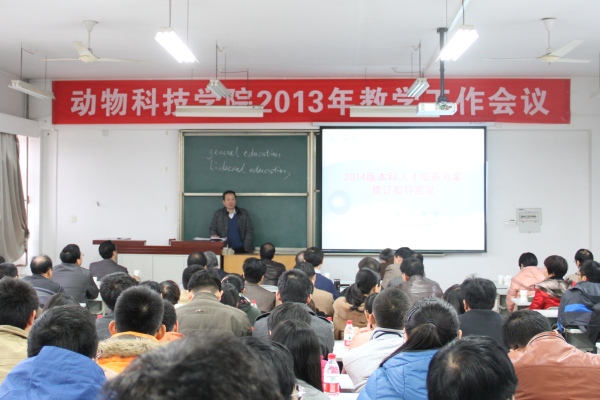 11月23日,我院在8号教学楼N8417召开2013年教学工作会议。赵忠常务副校长出席会议并作报告,闫祖书书记宣布启动了本科生学业导师制工作并做了报告,青年教师龙明秀、张建勤、杨小军、潘传英、曹阳春、吴朗、许岳飞、王洪宝进行了教学经验交流和教学展示,院督导组张英汉教授就教学中的概念问题做了简短的交流。本次会议的主题是“展示教学风采,提升教学能力,提高培养质量”,会议由姚军虎院长主持。