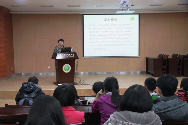 张慧林副教授首先与同学们分享了她所指导的团队参加第十三届全国“挑战杯”大学生课外学术科技作品竞赛并获奖的艰辛历程与心得体会。她强调,当代大学生应该走出“课堂-食堂-宿舍”的传统生活,主动走进实验室,在实践过程中认识科学,体会科技创新的魅力,培养独立思考与实践操作能力。