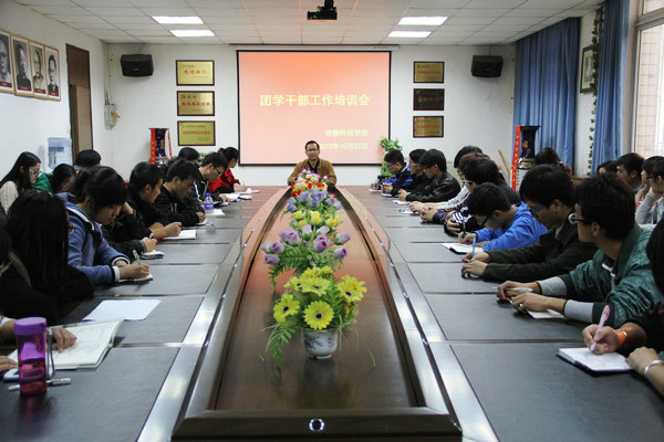 10月25日下午,学院在四号楼一层会议室举行团学干部工作培训会。学院党委书记闫祖书为主要团学干部进行培训。专兼职辅导员和50余名团学干部参加了会议。