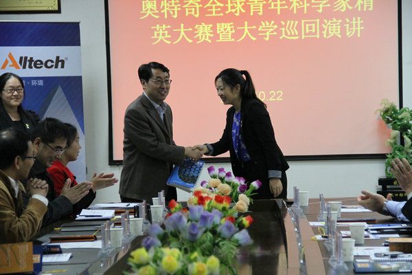 颁奖仪式结束后,“奥特奇”公司为我院赠送霉菌毒素蓝皮书,并进行了“奥特奇”全球青年科学家精英大赛暨大学巡回演讲活动。