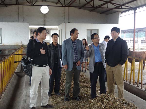 在陕西省秦川肉牛良繁中心杨凌基地,史高领副厅长一行实地查看了秦川肉牛育种基础群和新引进的澳洲安格斯牛繁育群,了解了良繁中心的繁育规模、运行机制和产学研合作等情况,肯定了秦川牛肉用本品种选育和安格斯牛纯种繁育工作,高度评价了校企结合培育秦川牛肉用新品种的工作。