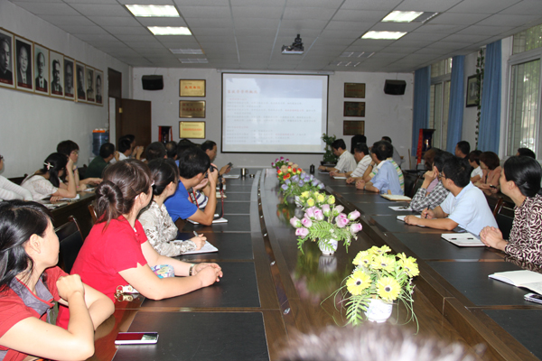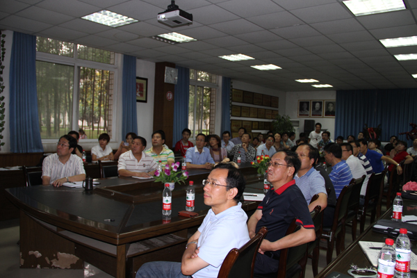 欧百钢处长首先简要介绍了全国畜牧学学科概况,并对2012年学科评估指标体系进行了分析说明。欧处长重点根据我院畜牧学科实际,针对畜牧学学科建设分别从学科队伍、科学研究、平台基地建设、研究生培养与学科建设关系等方面为师生作了一场精彩的报告。