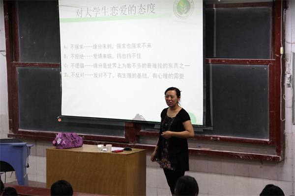 8月29日晚,我院在四号楼4129教室召开2013级新生心理健康教育报告会,邀请心理咨询中心符丹老师担任主讲嘉宾,辅导员胡巧娟、王德光和2013级全体新生参加了此次会议。