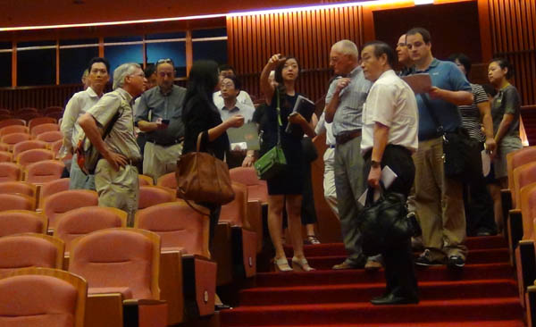 在曲江会议中心演播大厅考察