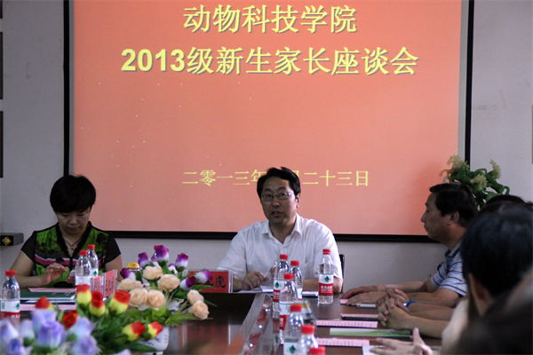 首先,姚院长对前来报到的新生及家长表示热烈的欢迎。他从我校及我院的历史发展切入,通过一系列数据向新生及家长总体上介绍了我院的师资队伍、学科体系及科研实力,并介绍了动物科学专业的基本情况。同时,姚院长从升学率、出国人数及就业情况三方面介绍了我院本科生培养计划,解除了家长对专业发展前景的困惑,表示学院会尽最大的努力为学生成长成才提供良好的平台。姚院长希望各位同学不仅要认真学习专业知识和英语,还要努力培养自己的动手能力,善于思考,做到“学思结合,知行统一”。