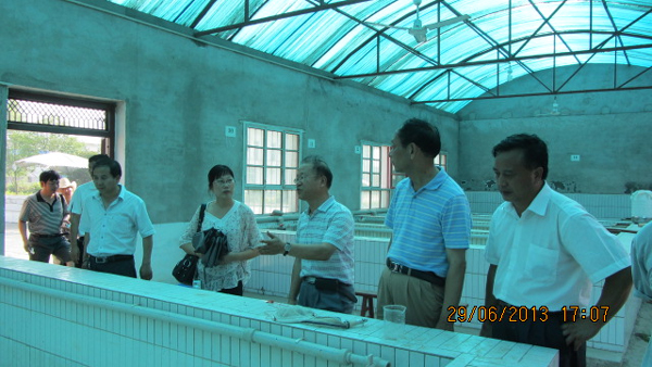 6月29日,贵州省水产总站副站长、遵义市水产站站长赵?远、黔南州农委副主任闵应炳等一行9人,在陕西水产技术推广站副主任孙增民、安康市渔业局副局长成定北、安康市鱼种场场长李寒松的陪同下,专程到我校安康水产试验示范站参观考察,试验站主任刘超副研究员全程陪同参观考察。