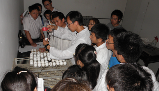 6月20日下午,第二届动物生产实践技能竞赛----鸡胚发育鉴定比赛在畜牧教学试验基地举行。