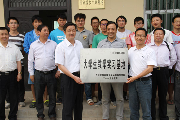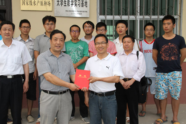 5月15日,闫书记一行专程赴渭南市合阳县新民家鱼原种场看望参加水产养殖学专业实习的带队老师和学生。陕西省水产总站樊天贵副主任、办公室樊铮主任、国家级陕西省新民家鱼原种场王鹏厂长接见闫书记一行。