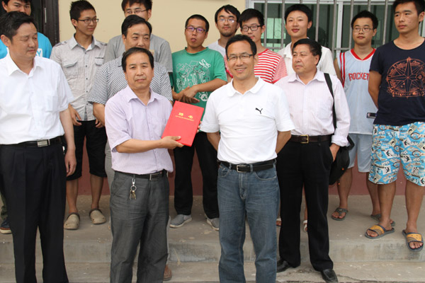 闫书记还代表学院向新民家鱼原种场授予了“大学生教学实习基地”牌匾,并为樊铮、王鹏技术员颁发了实习指导教师的聘书。