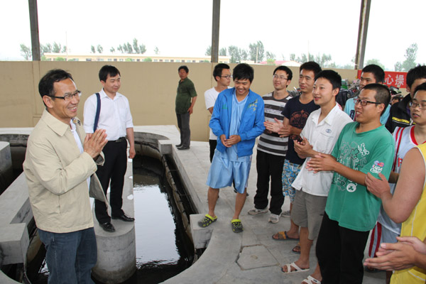 水产养殖学专业2010级2班戚晓舟同学代表全体实习学生感谢闫书记一行不辞劳苦前来慰问看望,感谢学院为同学们提供了宝贵的实地专业实习机会,感谢新民家鱼原种场领导和老师们多日来的精心安排和细心指导。他表示大家一定珍惜实习机会,充分利用良好的实习条件,努力提高自身的专业实践技术。