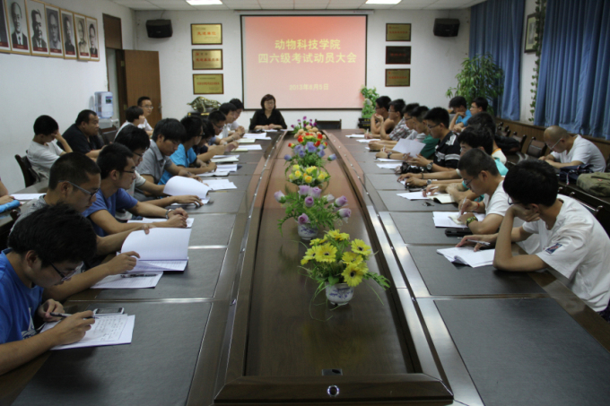 6月5日下午,我院在四号楼一层会议室召开了2013年6月四六级考试考风考纪动员大会。我院党委副书记兼副院长王晓娟,教学秘书郭超,学工秘书袁伟斌,全体辅导员,以及来自我院各个年级的50余名本科生代表参加了动员会。会议由我院学工秘书袁伟斌主持。