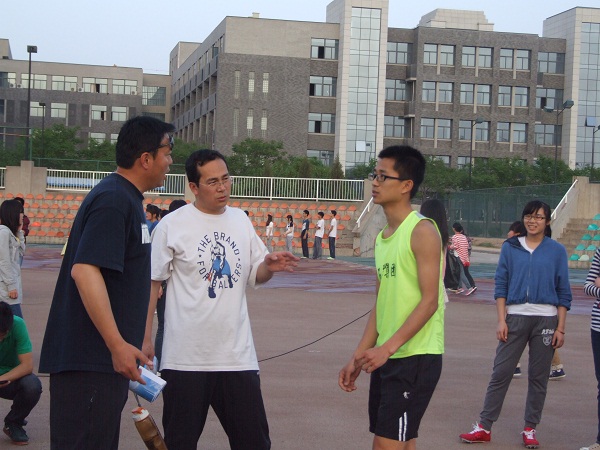 体育辅导员王斌、任启俊老师对运动员们的赛前准备和调整做了详细的辅导。