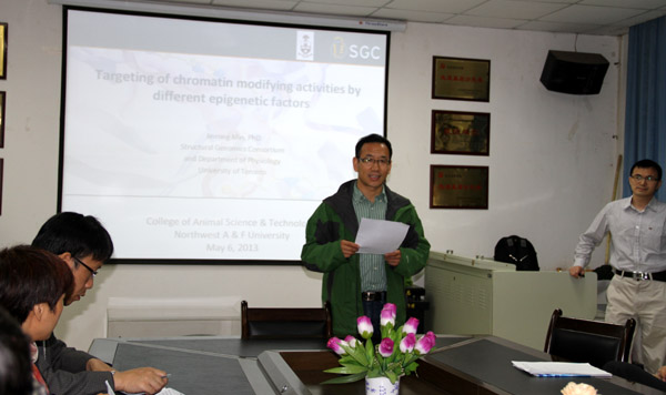 5月6日上午,加拿大多伦多大学闵金荣博士在学院一楼会议室为师生作了题为“Targeting of chromatin modifying activities by different epigenetic factors”的报告。报告会由闫祖书书记主持。