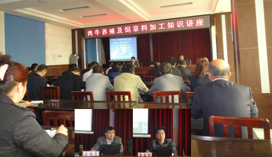4月25日上午,喀什地区畜牧兽医局举行“肉牛养殖饲草料加工知识讲座”,昝林森教授应邀做了题为“我国肉牛产业发展现状及肉牛改良应注意的几个问题”的专题报告,昝林森教授结合我国肉牛产业发展现状、历程和趋势,系统阐述了我国肉牛业发展总体思路、指导思想、技术路线,并就肉牛遗传改良的概念、基本原理、技术环节以及品种改良中应该注意的问题等方面进行了深入细致的分析和讲解。辛亚平副教授应邀就肉牛养殖中牛的饲料资源开发、健康养殖、全价混合日粮饲喂技术等内容进行了系统讲解。艾尼瓦尔局长、王燎原总畜牧师以及喀什市、疏附、疏勒、伽师、岳普湖县畜牧兽医局局领导和地区畜牧系统有关技术人员共50余人参加了培训。