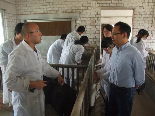 4月25日下午,学院党委书记闫祖书及党务秘书樵淑银、学工秘书袁伟斌到畜牧教学基地检查动物科学专业大三学生**********参加的教学实习。
