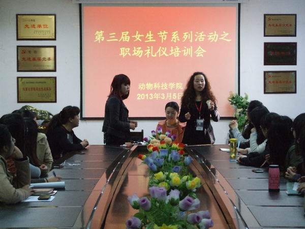 3月5日下午,来自上海薇薇新娘杨凌分店的化妆部总监刘依依女士一行二人为我院师生作了一场别开生面的职场礼仪培训会。学院女教工、研究生及本科生50余人参加了此次培训会。