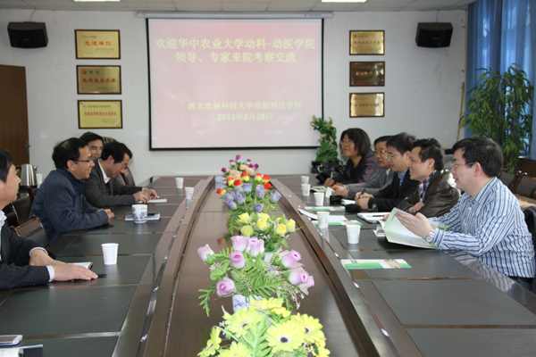 3月28日下午,华中农业大学6165cc金沙总站检测中心、动物医学院副院长蒋思文教授一行5人来学院考察交流,学院领导闫祖书、姚军虎、动科系副主任胡建宏、水产系主任王高学、龚月生教授等参加了座谈会。