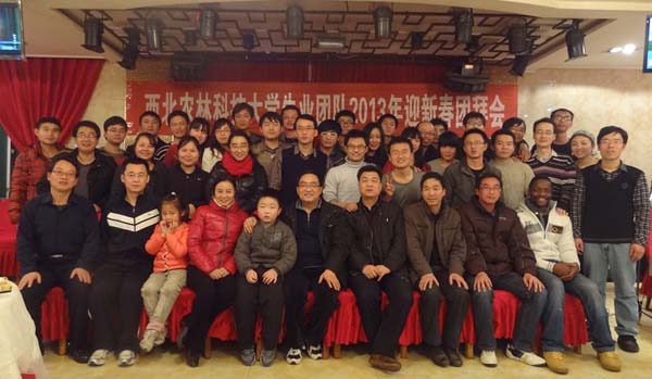 张智英院长代表学院讲话,充分肯定了团队的工作及其所取得的成绩,西安银桥公司和陕西秦川牛业公司的领导也分别致辞,对团队取得的成绩表示祝贺,并向团队师生表达了新春的美好祝愿。昝林森教授在团拜会致辞时,简要回顾了团队2012年的主要工作,对各级领导、社会各界对团队工作的大力支持和热情帮助表示感谢,并向大家表示新春问候。