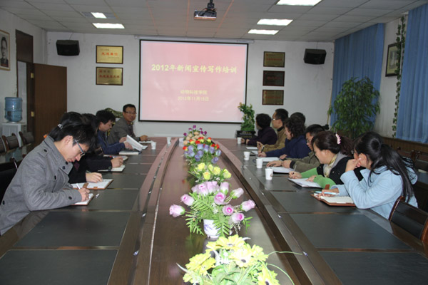 11月15日,学院邀请党委宣传部李晓春老师在一楼会议室举办2012年新闻宣传写作培训会,学院各位秘书、辅导员及学生通讯员参加了培训会。