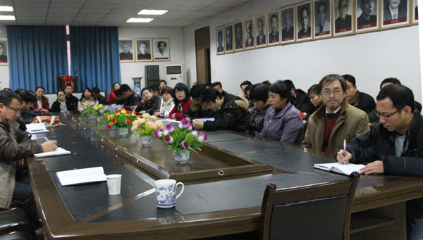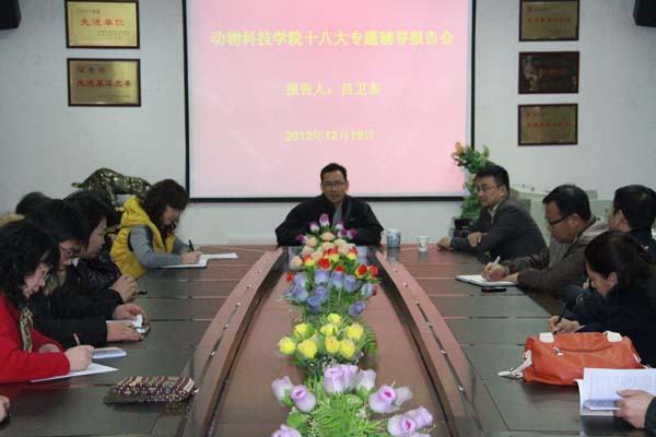 12月19日下午,我院党委邀请校党委宣传部部长吕卫东教授在学院一楼会议室为教职工做十八大学习辅导报告。学院党委成员、中心组成员、各党支部委员及教职员工80多人参加了会议,会议由院党委闫祖书书记主持。