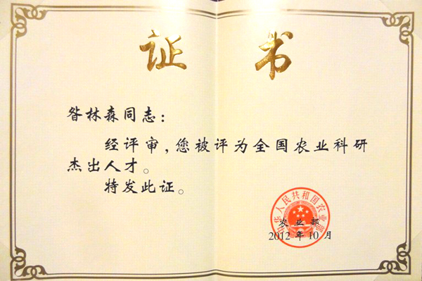 2011、2012年,农业部分两次评选产生了首批150名全国农业科研杰出人才。