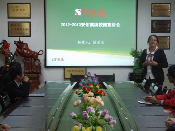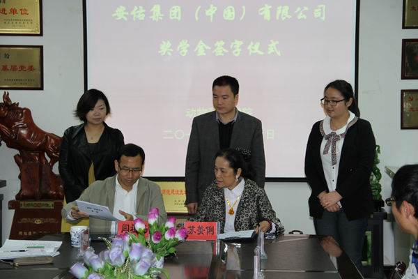 苏美俐女士详细介绍了集团的历史沿革和目前状况,希望企业与学院实现产学结合,表达了集团对人才的渴望,欢迎学院学子将来到集团工作成长。闫书记代表学院感谢安佑集团对学院学生的关心,相信通过本次奖学金及就业实习基地的设立,进一步加深了集团与学院之间的合作,使校企建立了长期的人力资源供需合作关系,实现学校、企业、学生“共赢”。