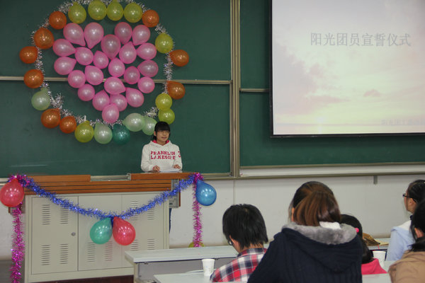 10月28日下午,学院阳光团员宣誓仪式在8T03教室隆重举行。校心理咨询中心主任金花、我院辅导员郭婷出席了此次会议。