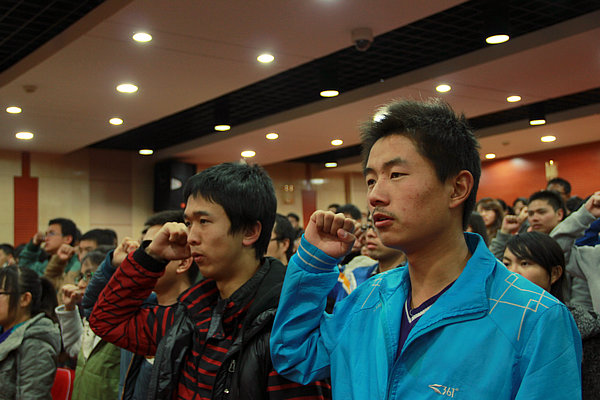 在昂扬向上的中国共产主义青年团团歌中,典礼圆满结束。随后,校团委副书记张永斌老师为全体学员讲授第一堂团课。