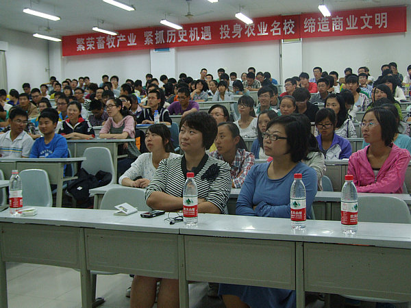 乔冰涛副总裁首先介绍了中国与美国农产品、畜产品的价格变化趋势,通过两个国家农牧业发展现状的对比,指出了我国农牧业作为朝阳产业的机遇与挑战。乔冰涛先生表示,面对当今的国际竞争,我国的畜牧业发展潜力很大,前景十分光明,极大地增强了同学们投身畜牧产业的信心。