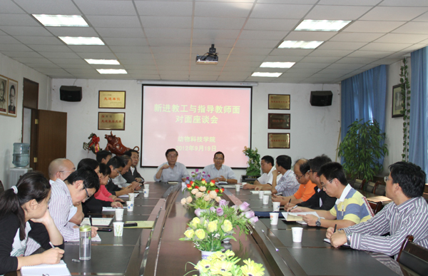今年我院共报到博士10人,为了给新进青年教师搭建一个良好的发展平台,使青年教师尽快熟悉教学各个环节,根据学校要求,学院为每位新进教工配备了一名指导教师。9月19日下午,为了保证新进教工指导工作质量,学院专门召开新进教工与指导教师面对面座谈会,院长张智英教授、院党委书记闫祖书、教学副院长姚军虎、督导组教师代表魏忠义教授以及新进教工和指导教师参加了座谈会。会议由闫祖书书记主持。