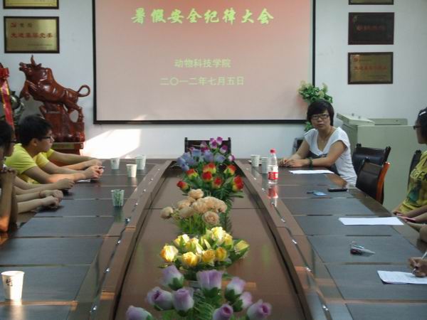 首先,袁伟斌老师向各班班长支书说明了暑期的放假时间安排以及对留校生的具体要求。他重点强调了暑期安全纪律方面的注意事项,提醒同学们不要参加由个人组织的打工、实习活动,严防传销组织,并简单介绍了传销组织的一些特征。袁老师希望同学们加强安全意识,注意人身及财产安全,并从防盗防骗、夏季饮食、外出旅游、参加实习等诸多细节向同学们做了强调。
