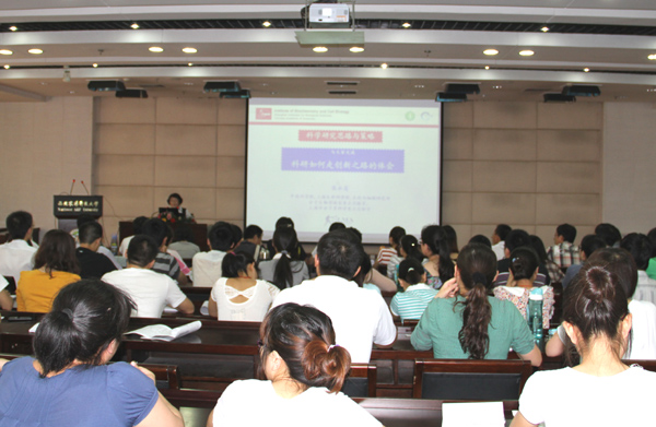 5月10日下午,中国科学院院士、中国科学院上海生物化学与细胞生物学研究所研究员、上海分子男科学重点实验室创始人和主任张永莲院士在国际交流中心207会议为师生作了题为“科研如何走创新之路的体会”的精彩报告,全校近600名研究生和教师到会聆听了报告。