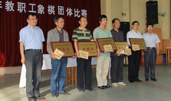 在校工会举办的2012年中国象棋团体比赛中,我院以孙世铎、刘福柱、吕亚军、雷海宁老师组成的代表队,经过三天两个阶段紧张、精彩的比赛,队员不畏强手,顽强拼博,连续作战,最终历史性的闯进八强,主力队员孙世铎老师在所有场次比赛中保持不败记录。