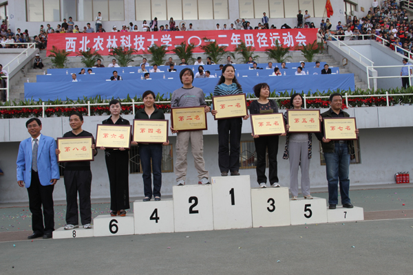 今年的运动会项目变化较大,由于趣味项目增加,各学院得分的不确定因素加大,我院有几名主力运动员因病因事请假不能到场,实力受到影响,但在3天紧张激烈地比赛中,全院教职工现场助威加油,所有运动员奋力拼搏,服务人员忙前跑后,最终我院以教工团体总成绩86分荣获团体总分第四名,并荣获精神文明奖,取得体育运动成绩和精神文明双丰收。