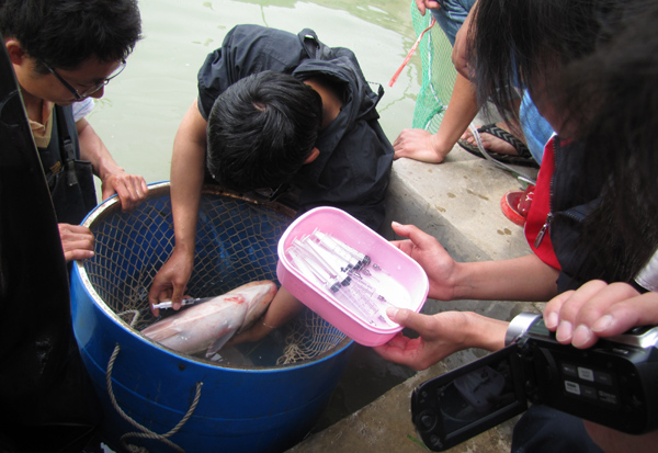 按照实习计划安排,同学们将继续结合试验站的试验示范工作,进行亲鱼培育、人工繁殖、苗种培育、成鱼饲养实践及水产病害学、鱼类养殖学、水生生物学、水域生态学等方面的课程实习。除鲢鳙、草鱼等常规养殖对象外,实习内容还涉及匙吻鲟、加州鲈鱼、鳜鱼、框鲤和斑点叉尾?等名优种类。实习还将结合汉江流域的具体特点,进行水源地渔业环境指标的检测。另外,同学们还将到瀛湖库区,参与网箱养殖的生产实习。
