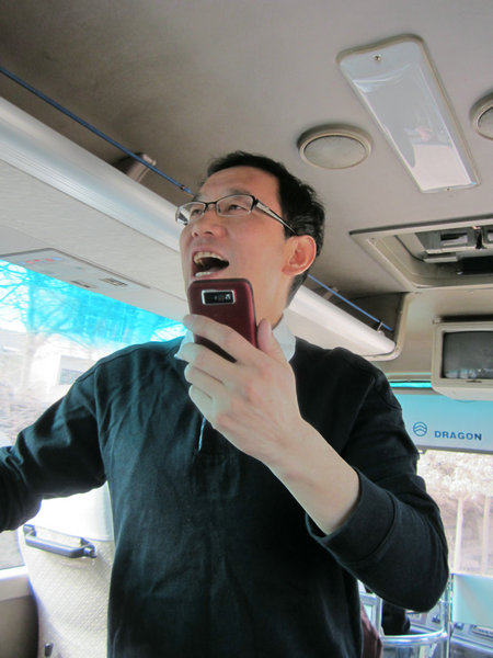 行车途中,学院师生开怀畅谈,欢笑连连,在闫祖书书记的提议下,师生间开始了表演互动。辅导员袁伟斌老师一曲动人心扉的《朋友》拉开了表演序幕。梁百川同学的日文歌温柔婉转,王晓娟副书记的《陪你一起看草原》高亢嘹亮……师生们尽显其才,欢笑不断,闫祖书书记领唱、全体师生合唱的《永远是朋友》更是把欢快的气氛推向高潮。