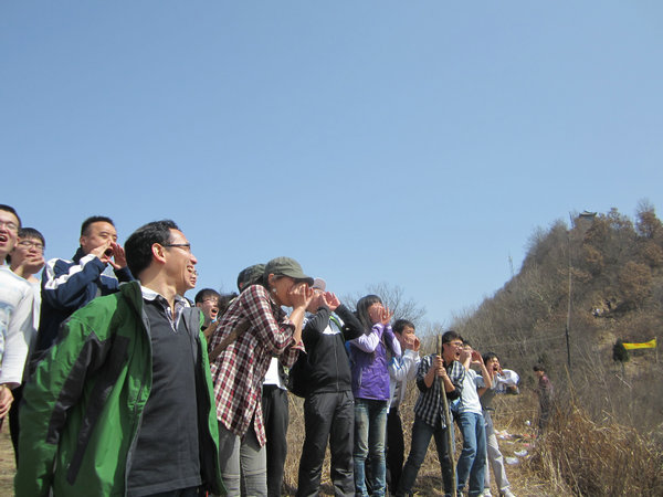 来到大青山,在闫书记的带领下,师生一起向山顶进发。道路崎岖,不能阻挡大家前进的脚步;身体劳苦,不能熄灭大家火热的激情。老师和同学们相互扶持和鼓励,在湿滑的地方互相提醒注意,在陡峭的路段手拉手奋勇前进。尽管每个人都是满身泥泞,汗流浃背,但是在身边的老师或同学的不断激励下,没有人因为一点困难就退缩不前。最终每个人都到达了大青山山顶。无限风光尽收眼底,老师和同学们都禁不住对着广阔天空尽情欢呼。