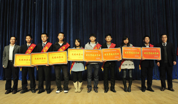 在2010-2011学年表彰大会上,党委书记闫祖书同志宣读了学院表彰决定,他希望受表彰的班级和同学要珍惜荣誉,戒骄戒躁,在今后的学习、生活和工作中发挥模范带头作用,再创新的佳绩;全院学生应以先进为榜样,勤奋学习、扎实工作、开拓创新、勇于实践,努力把自己塑造成为德智体美全面发展的建设者和接班人,开创学院学生工作的新局面。参会领导为获奖集体和个人代表进行了颁奖。