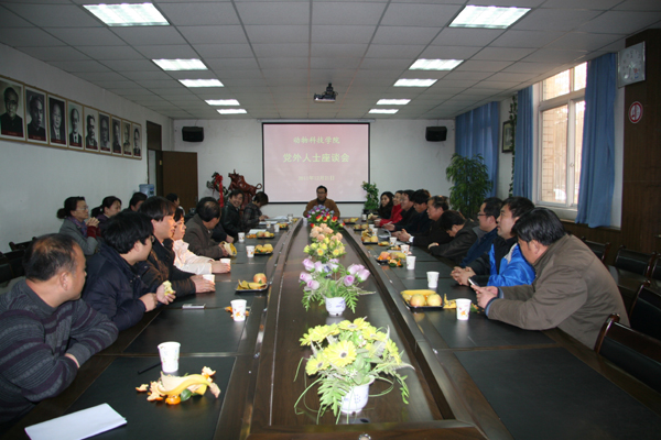 12月21日下午,学院在一楼会议室召开了党外人士座谈会,学院党委副书记兼副院长王晓娟、各民主党派及无党派人士30人多参加了会议。会议由院党委书记闫祖书同志主持。