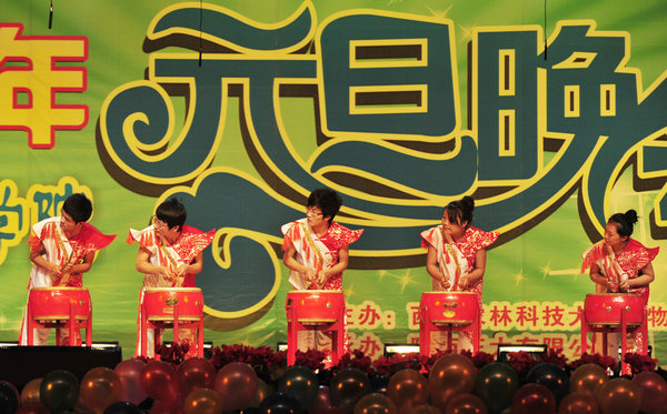 校阮乐团打击乐队击鼓表演《滚核桃》
