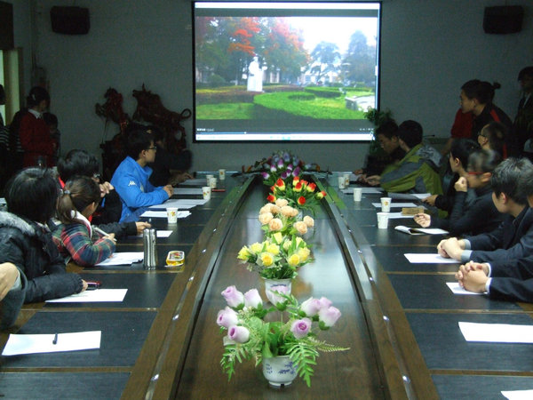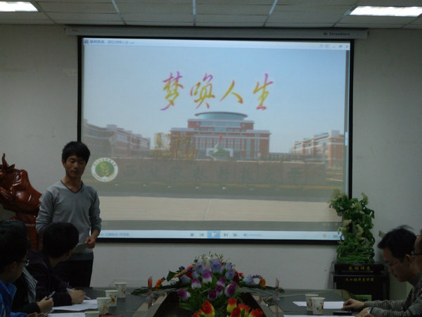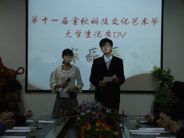 11月18日晚,由我院文艺部主办的第十一届金秋文化艺术节之DV大赛优秀作品展在4号楼一层会议室展开。校团委副书记张永斌,大学生艺术团团工委书记杨彦宝,就业指导中心邹春老师,学生处教育管理科欧渊博老师,6165cc金沙总站检测中心团工委书记袁伟斌及全体辅导员老师应邀出席了本次活动。