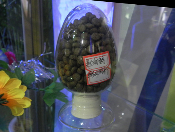 在第十八届农高会上,安康水产试验示范站的展台再次引起了广泛关注,水族箱中在安康当地成功推广的匙吻鲟、加州鲈鱼、鳜鱼、俄罗斯鲤、框鲤等水产养殖品种,以及展柜中试验站新近研发的匙吻鲟专用膨化饲料以及蚕蛹蛋白多功能渔用小肽吸引了众多参观者的目光。