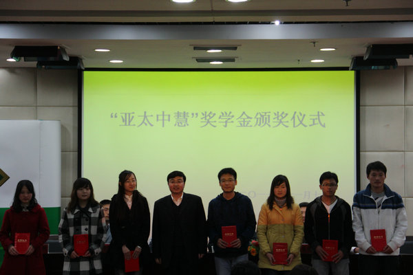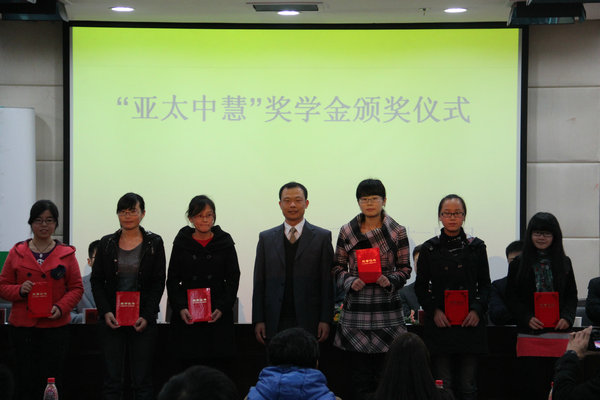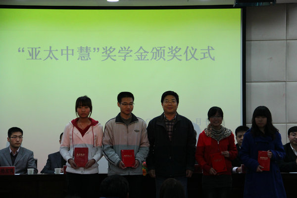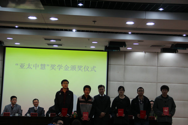 11月10日晚,在南校国际交流中心207会议室,我院和动医学院隆重举行了“亚太中慧”奖学金颁奖仪式。出席颁奖仪式的领导和嘉宾有亚太中慧集团人力资源总监翟继满,人力资源部经理潘维凯,人力资源部招聘经理滕建华、杨宏健,我校就业指导中心主任胥耀平,动医学院党委副书记申让平,就业指导部部长邹春。颁奖仪式由我院党委副书记兼副院长王晓娟主持。两个学院的辅导员老师、获奖学生及多个学院的同学参加了此次活动。