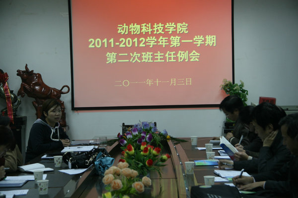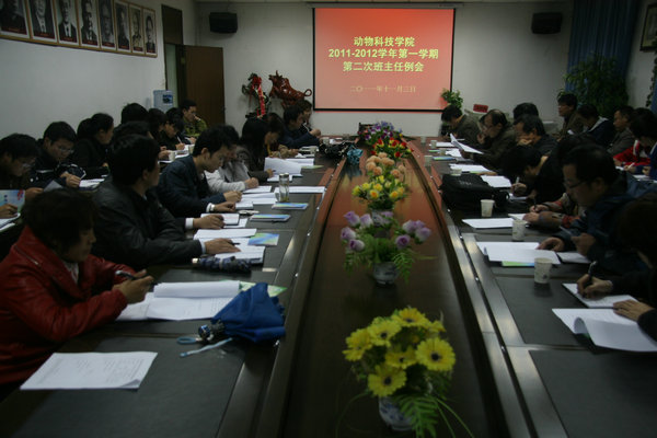 教学秘书郭超老师传达了我校关于实施国际化战略加快创建世界一流农业大学的意见并介绍了2012年度国家公派优秀本科生国际交流选派项目,针对本科生国际交流项目向我院的班主任做了动员,希望符合条件的同学能够踊跃报名。