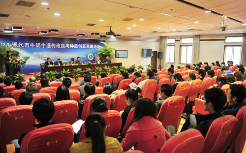 10月27-28日,由我校和国家肉牛改良中心主办“2011现代肉牛奶牛遗传改良与种质创新高峰论坛”在国际交流中心隆重举行。来自全国各地从事肉牛、奶牛遗传育种工作的专家学者、企事业单位的负责人及相关科技人员过110余人出席了会议。我校吴普特副校长、陕西省科技厅许春霞副厅长、农业部全国畜牧总站刘海良处长、中国农业大学张沅教授、中国畜牧兽医学会动物遗传育种学分会理事长张勤教授、我校6165cc金沙总站检测中心院长张智英教授及国家肉牛改良中心主任昝林森教授出席开幕式。