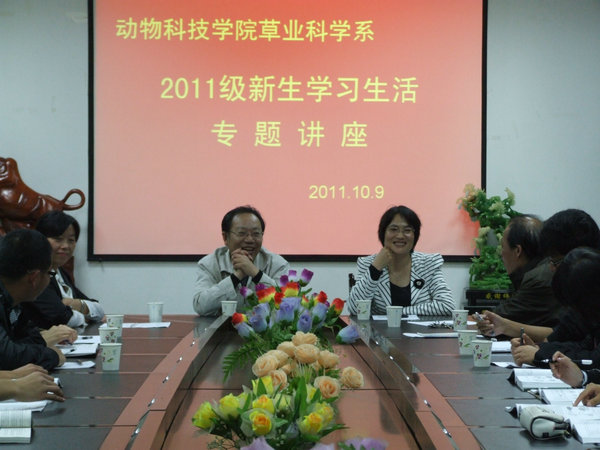 《植物学》课程是草业科学专业非常重要的一门基础课程,为了激发广大新生的《植物学》课程学习热情,掌握大学学习方法和学习技巧,提高学习效率,10月9日晚,我院草业科学系在4号楼一层会议室召开了2011级新生学习生活专题讲座。学院副院长姚军虎、党委副书记兼副院长王晓娟、草业科学系2011级新生班主任许岳飞、曹社会、教师代表何学青、辅导员刘铂、兼职辅导员马海东及草业科学系全体新生参加了此次座谈会。来自生命学院的李琰老师和陈铁山老师及3名草业科学系08级优秀学生围绕“打好基础,激发热情,掌握技巧,提高效率”为题为大家做了精彩发言。座谈会由草业科学系主任龙明秀主持。