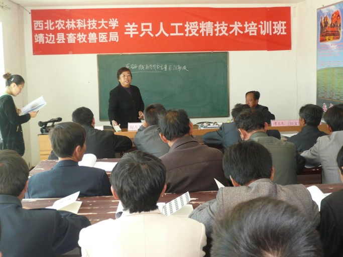 培训班由靖边县畜牧技术推广站边治堂同志主持,县畜牧兽医局局长田文涛出席并讲话。周占琴教授和武和平高级畜牧师分别讲解了种公羊饲养管理、采精与人工授精器械准备与消毒、采精与输精技术等,并指导学员进行了实践操作练习。横山县畜牧局曹克亮畜牧师为学员介绍了在自己在羊人工授精技术方面积累的经验与体会,并示范了细管输精的操作方法。学员普遍认为,这种培训实用性强,效果好。