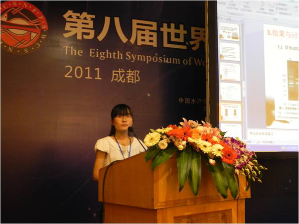 此次世华会共安排特邀报告15个,口头报告89个,墙报264个。我院团队共有1个口头报告,3个墙报被接收。硕士研究生黄吉芹同学在大会上做了题为“草鱼ATGL基因的表达及饲喂n-3 HUFAs对其影响的研究”的口头报告,博士研究生刘品同学的墙报“DHA和EPA对草鱼前体脂肪细胞增殖分化及脂代谢相关基因表达的影响 ”获大会优秀墙报奖。受组委会委托,吉红副教授在大会闭幕式上对分子营养和蛋白源主题的墙报进行了全面评点。会议中,我院团队与学术界以及企业界人士进行了深入交流。