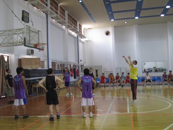 整场比赛中,两队队员都精神饱满,毫不示弱。漂亮的上篮、迅猛的快攻、严密的防守、默契的配合??精彩接连不断、扣人心弦!场外加油、呐喊声此起彼伏,一次又一次地把现场气氛推向高潮。经过紧张、激烈的角逐,最终学生队以微弱比分战胜教工队,此次师生篮球赛圆满结束。